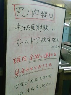 「丸ノ内線はー 先ほど赤坂見附駅にてホームドアが故障したため