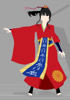 途中で黒い着物を脱ぎ、雰囲気をガラリと変えます。