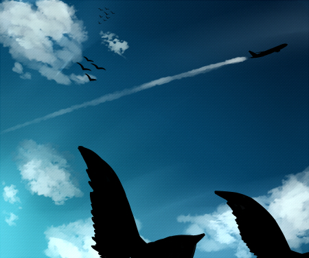 飛行機雲を描きたかったのですが、ちょっと物足りないなーと思って鳥追加。