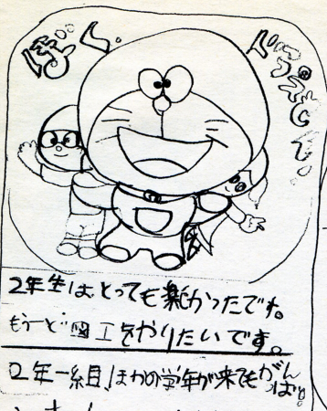 わたしは小2の時からノートのラクガキに興じてました。下に描いてあるドラえもんがそれです。