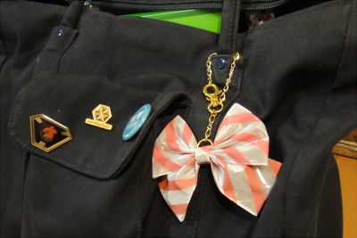 まばらにピンバッジがついてるだけのカバンに、すこしかわいさが出ました。