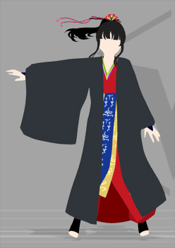 途中で黒い着物を脱ぎ、雰囲気をガラリと変えます。