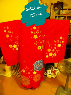赤い着物、白い着物、帯、黒い着物の一部です。 袴以外は大体つくりました。