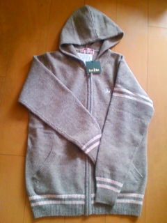 カーディガンがかわいいです!茶色に白の刺繍って珍しいなあと思います