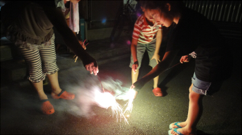 最近の打ち上げ花火ってよくできてますね。高く上がって大きく広がる、花火玉さながらのものです。