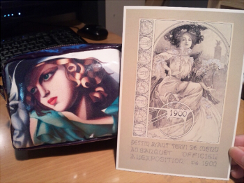 レンピッカのポーチとミュシャのポストカード。衝動買い。